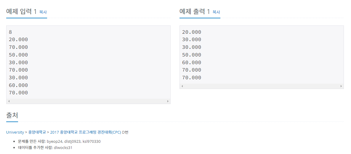 이 문제는 정렬(sorting)문제다. STL에서 제공하는 sort함수로 쉽게 해결이 가능했다.